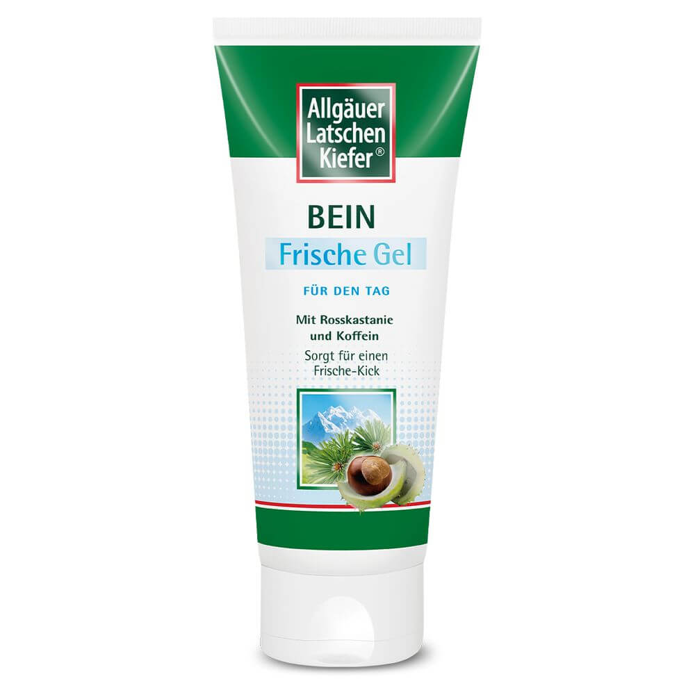 Langes Stehen oder Sitzen verlangsamt den Rückfluss des Blutes in den Beinen, dadurch werden die Venen übermäßig strapaziert und es kommt zu einer Venenschwäche, die schwere Beine, aber auch Besenreiser und Krampfadern verursachen kann. Allgäuer Latschenkiefer Bein Frische Gel enthält natürliches Latschenkiefernöl, Rosskastanie und Koffein. Ein Wirk­komplex mit weiteren wertvollen Pflanzenextrakten sorgt mit seinem vitalisierenden Kühl-Effekt für ein leichtes Bein-Gefühl - den ganzen Tag. Allgäuer Latschenkiefer Bein Frische Gel pflegt und erfrischt. Es ist besonders zur Anwendung beim Sport geeignet.