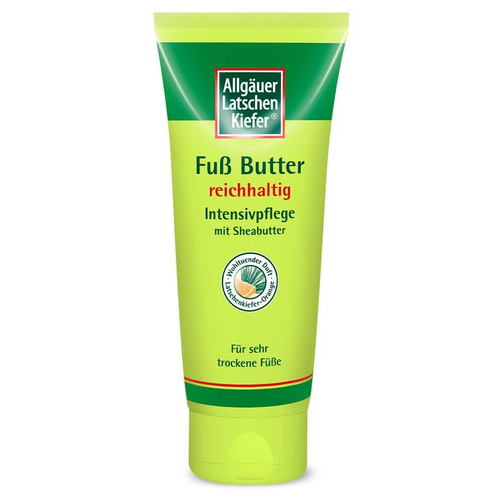 Die intensive Fuß Butter enthält wertvolles Allgäuer Latschenkiefernöl, Shea Butter, Cupuacu Butter und hautberuhigende, feuchtigkeitspendende Pflanzenextrakte. Verwenden Sie die Fuß Butter idealerweise abends oder an einem Ihrer persönlichen Wellness-Tage als Intensiv-Pflegekur und pflegen Sie Ihre trockenen und rissigen Füße streichelzart. Genießen Sie den frischen Duft von Latschenkiefer-Orange.