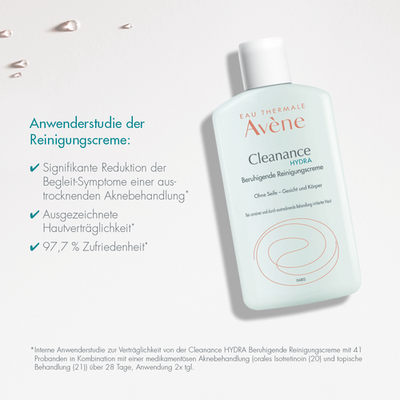 Die Cleanance HYDRA Beruhigende Reinigungscreme reinigt sanft empfindliche, durch medizinische Akne-Behandlung ausgetrocknete und gereizte Haut.