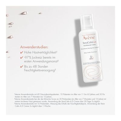 Die Avène XeraCalm A.D Pflegeserie ist speziell für die extrem trockene und zu Neurodermitis neigende Haut konzipiert worden. Sie beruhigt die Haut, wirkt stark rückfettend und lindert den quälenden Juckreiz, unter dem vor allem Neurodermitis-Patienten sehr leiden. Von der Reinigung bis zur Pflege und Intensivpflege bietet Avène XeraCalm A.D genau die richtigen Formulierungen für die angegriffene und strapazierte, trockene Haut. Der Säureschutzmantel wird schnell wiederaufgebaut und die Haut mit Nährstoffen und Feuchtigkeit versorgt. Zusätzlich entspannt der sehr hohe Anteil an Avène Thermalwasser die Haut und beruhigt sie dank der reizlindernden und entzündungshemmenden Eigenschaften. Alle Produkte haben hochverträgliche Formulierungen, um das Risiko von allergischen Reaktionen zu minimieren. Durch die sterile Herstellung und die sterile Entnahme aufgrund des sterilen Verschlusses bei Creme, Balsam und Anti-Juckreiz Konzentrat wird der Tubeninhalt zusätzlich vor eindringenden Keimen geschützt und somit kann auf Konservierungsstoffe und Duftstoffe verzichtet werden. Eine maximale Hautverträglichkeit ist garantiert.