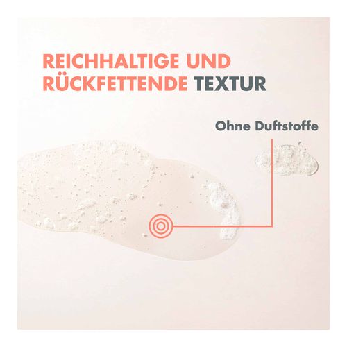 Die Formulierung beinhaltet den ersten postbiotischen Aktivstoff aus dem Avène Thermalwasser, I-modulia®, der Juckreiz* reduziert, die Abwehrkräfte der Haut stimuliert und Irritationen bekämpft, mit Cer-omega, hautähnlichen Lipiden, die Trockenheit entgegen wirken und die Hautbarriere wiederherstellen, und Avène Thermalwasser, das auf natürliche Weise beruhigend, ausgleichend und stärkend wirkt. *in Verbindung mit trockener Haut
