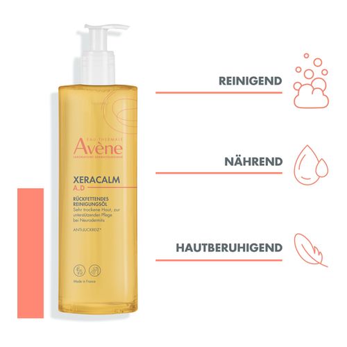 XERACALM A.D Rückfettendes Reinigungsöl reinigt sanft und beruhigt sehr trockene, zu Neurodermitis und Juckreiz neigende Haut.