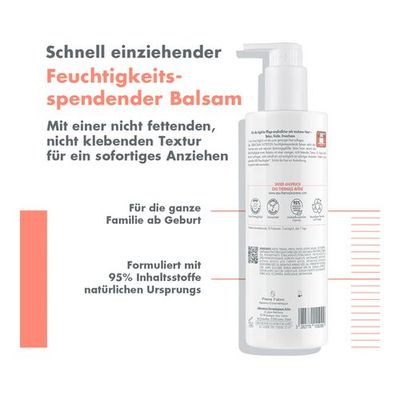 Feuchtigkeitsspendender und nährender Balsam für empfindliche sehr trockene Haut für die ganze Familie ab Geburt.