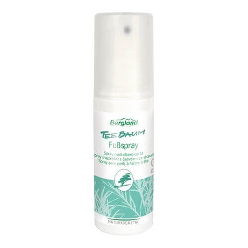 Bergland Teebaum Fußspray mit naturreinem Teebaum-Öl, Salbeiblätter- und Rosmarin-Extrakt wirkt wohltuend bei müden und strapazierten Füßen. Erfrischt bei Fußschweiß und Fußgeruch.