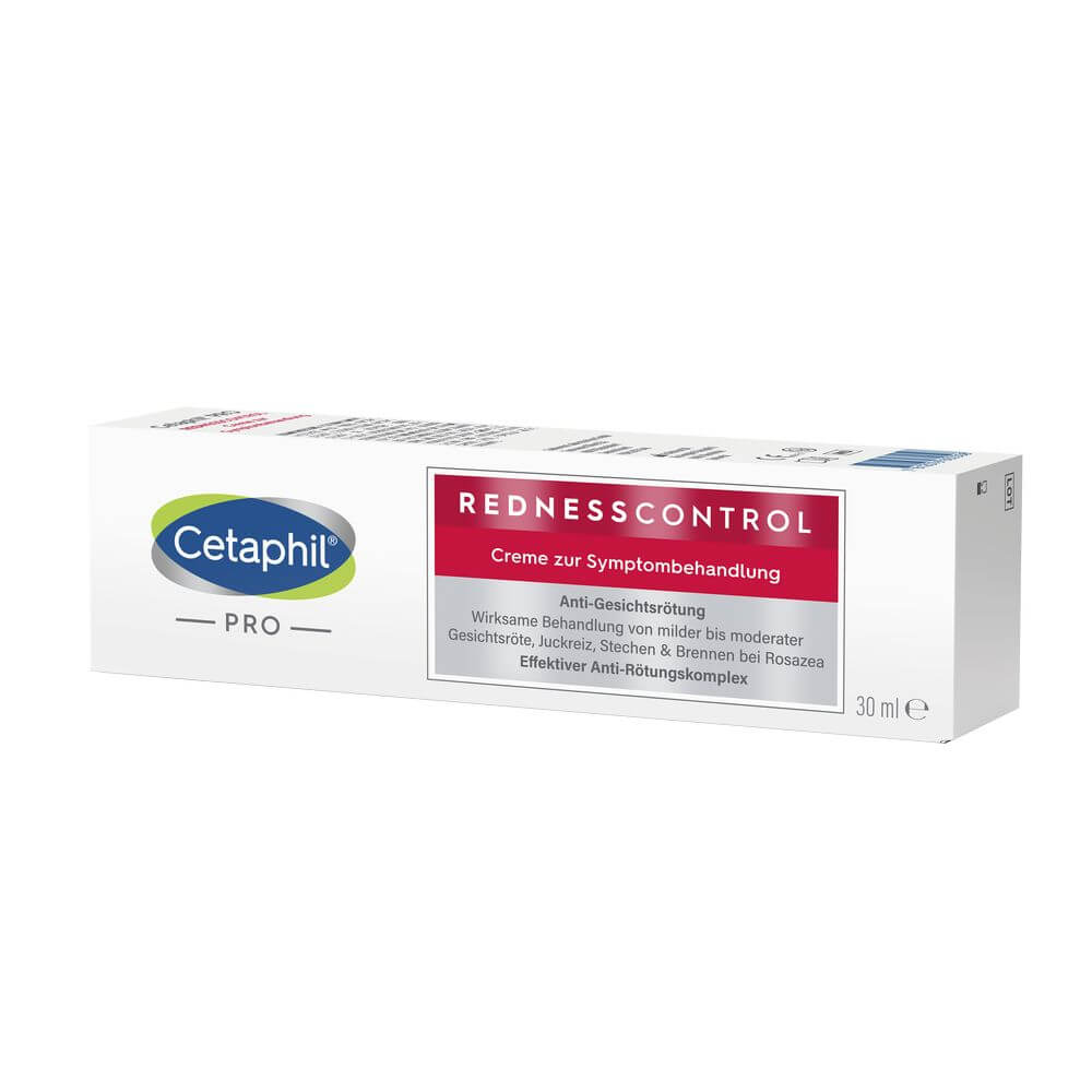 Cetaphil® RednessControl Creme zur Symptombehandlung hilft nachhaltig gegen Rötungen und Trockenheit der empfindlichen Rosazea-Haut. Der einzigartige Anti-Rötungskomplex schützt vor äußeren Einflüssen, wie z.B. Wind, plötzlichen Temperaturschwankungen oder Sonnenlicht. Nach dem Auftragen bildet sich ein elastischer, gleichmäßiger Schutzmantel, der nach dem Auftragen nicht spürbar ist. Die Creme zur Symptombehandlung beruhigt die empfindliche Haut, fettet nicht und hinterlässt ein angenehm gepflegtes Hautgefühl. Erste Ergebnisse sind in der Regel nach 2 Wochen sichtbar.
