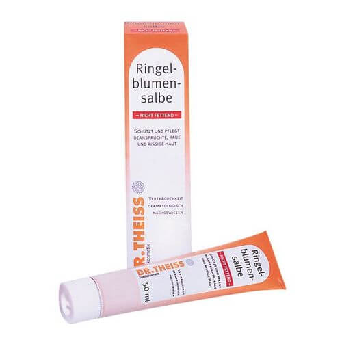 Der wertvolle Ringelblumenextrakt wurde von DR. THEISS in eine nicht fettende Salbengrundlage eingearbeitet, sodass die Emulsion völlig von der Haut aufgenommen werden kann.