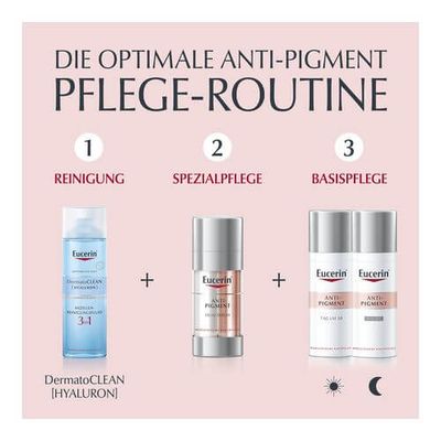 Die Eucerin Anti-Pigment Nachtpflege mit leichter, schnell einziehender Textur hilft wirksam bei Pigmentflecken und sogenannte Altersflecken. Der patentierte Wirkstoff Thiamidol® wirkt effektiv am Ursprung von Pigmentflecken und trägt bei regelmäßiger Anwendung sichtbar zu deren Milderung bei. Zusätzlich unterstützen Ceramide die Zellerneuerung über Nacht. Der Haut wird so ein strahlenderes Aussehen und ein ebenmäßigerer Hautton verliehen.
