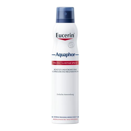 Mit dem Eucerin Aquaphor Protect & Repair Spray kann extrem trockene, rissige und irritierte Haut gepflegt werden und eine schnellere Hautregeneration wird unterstützt. Die Creme im innovativen Sprayformat hilft auch schwer erreichbare, größere Körperregionen, wie z.B. trockene Hautstellen am Rücken oder den Beinen zu versorgen.