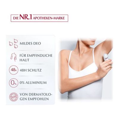 Das milde Deo ohne Aluminium (ACH) und Parabene schützt bis zu 48 h vor Körpergeruch und ist selbst bei empfindlicher Haut und nach der Rasur und Epilation geeignet.