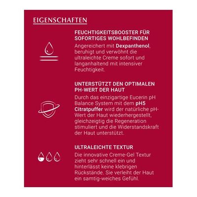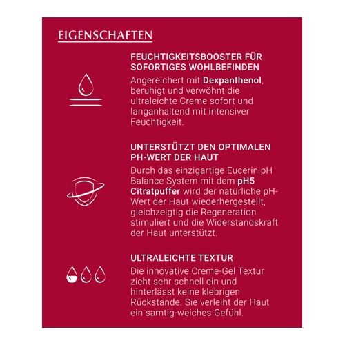 Durch das einzigartige Eucerin pH Balance System mit dem pH5 Citratpuffer wird der natürliche pH-Wert der Haut wiederhergestellt und gleichzeitig die Hautregeneration stimuliert.