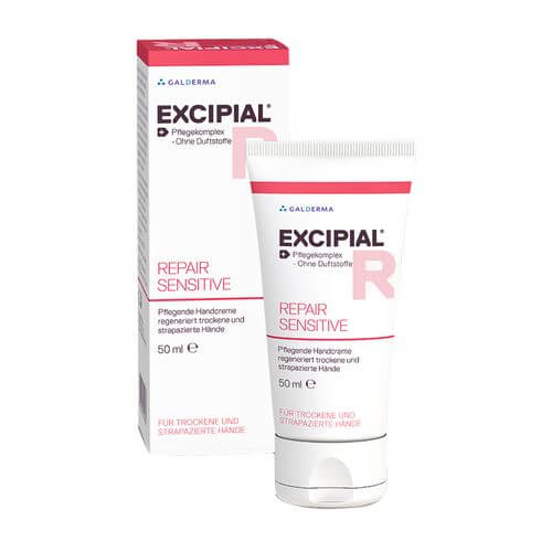 Excipial Repair Sensitive pflegende Creme für trockene und strapazierte Hände.