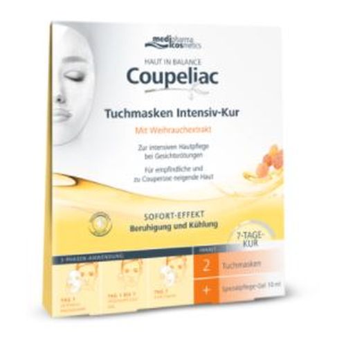 Die HAUT IN BALANCE Coupeliac Tuchmasken Intensiv-Kur ist die wirksame Kombination aus 2 Tuchmasken mit Sofort- Effekt und dem HAUT IN BALANCE Coupeliac Spezialpflege-Gel als ergänzende Pflege zur gezielten Anwendung.