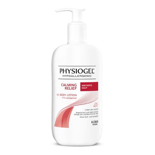 Die PHYSIOGEL® Calming Relief A.I. Body Lotion ist eine leichte Lotion, welche für irritierte oder juckende Haut entwickelt wurde. Durch einen hautberuhigenden Wirkkomplex aus hautverwandten Lipiden und Palmitoylethanolamin (PEA) lindert die PHYSIOGEL® Calming Relief A.I. Body Lotion Juckreiz und Rötungen, zudem wird die Haut natürlich und sanft gepflegt.