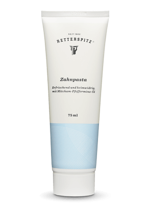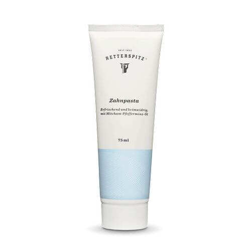 Retterspitz Zahnpasta ist säuregepuffert, stärkt die Kapillardurchblutung des Zahnfleisches, festigt das Zahnfleisch und härtet empfindliche Zähne ab. Die Zahnpasta entfernt Speiserückstände und bakterienhaltige Plaques an den Zahnoberflächen. Das Pflegepräparat eignet sich ebenfalls für elektrische Zahnbürsten. Gibt sofort ein frisches Gefühl durch das ätherische Öl der Mitcham-Minze. Spülungen mit Retterspitz Mund- und Gurgelwasser morgens und abends runden das Pflegeprogramm ab. Würzige pflanzliche Extrakte, u. a. Thymian und Eukalyptus verringern die Keimbelastung im Mundbereich.