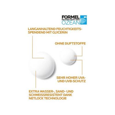 Vor dem Aufenthalt in der Sonne großzügig auftragen. Alle zwei Stunden erneut auftragen, insbesondere nach dem Aufenthalt im Wasser, nach dem Abtrocknen und Schwitzen.