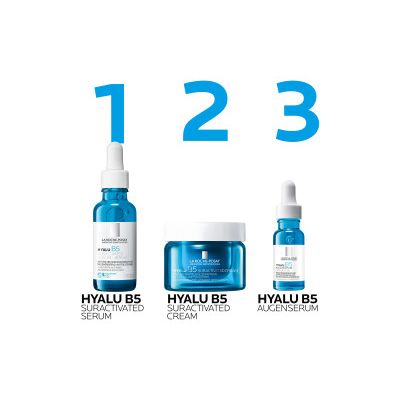 Die La Roche Posay Hyalu B5 Suractivated Cream ist eine Ergänzung zur Anti-Aging Hautpflege und sorgt für ein strafferes, glatteres und aufgepolstertes Hautbild. Angereichert mit Hyaluronsäure, Vitamin B5 und Ectoin mildert die Creme Falten, stärkt die Hautschutzbarriere, spendet intensiv Feuchtigkeit und beruhigt empfindliche Haut – für ein jünger aussehendes Hautbild mit mehr Volumen und Festigkeit. Zudem fühlt sich die leichte, nicht komedogene Textur angenehm auf der Haut an und sorgt mit seinen nährenden Eigenschaften für ein spürbar geschmeidigeres Hautgefühl. Die Creme wird von Dermatologen empfohlen und ist passend für alle Hauttypen, auch bei empfindlicher Haut.