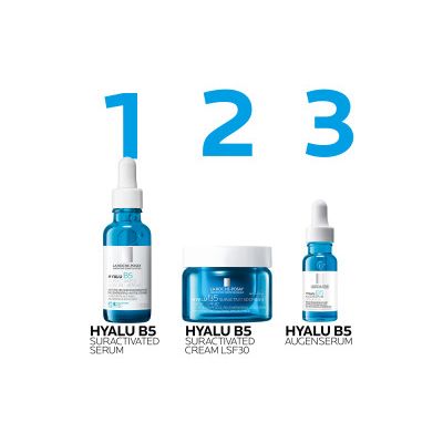 Die Haut vor der Anwendung gründlich reinigen, um Schmutz und Unreinheiten zu entfernen. Bei Bedarf das Hyalu B5 Suractivated Serum auftragen, um die Anti Aging Wirkung zu verstärken. Anschließend die Hyalu B5 Suractivated Cream mit LSF 30 gleichmäßig auf Gesicht und Hals verteilen. Für optimale Ergebnisse sollte die Creme morgens als täglicher Sonnenschutz aufgetragen, und abends wieder abgewaschen werden.
