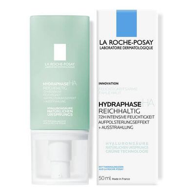 Die HYDRAPHASE HA reichhaltige Gesichtspflege von La Roche Posay spendet der Haut langanhaltend Feuchtigkeit und verleiht intensiv. Mit Hyaluronsäure natürlichen Ursprungs, Sheabutter und Thermalwasser aus La Roche Posay wird die Haut intensiv mit Feuchtigkeit versorgt, aufgepolstert und geschmeidig gepflegt. Die reichhaltige Gesichtspflege wirkt Trockenheit entgegen und schenkt der Haut mehr Ausstrahlung. Die Haut bleibt bis zu 72 Stunden mit Feuchtigkeit versorgt und fühlt sich zart an.