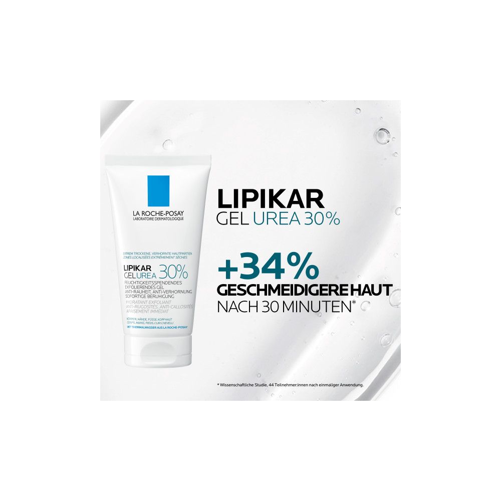 Lipikar Gel Urea 30 % ist ein feuchtigkeitsspendendes Gel mit exfolierender Wirkung gegen extrem trockene und verhornte Haut. Die wirksame Pflege verbessert das Hautbild sichtbar ab der ersten Anwendung, was wissenschaftliche Studien bestätigen. Der wohltuende Wirkstoffkomplex mit 30 % Urea, Themalwasser und Niacinamid spendet der Haut bis zu 48 Stunden Feuchtigkeit, glättet die Haut und wirkt dank hoher Kozentration von Urea besonders effektiv bei der Abschuppung abgestorbener Hautzellen. Das pflegende Lipikar Gel ist besonders gut verträglich – auch bei sehr empfindlicher Haut. Die transparente Gel-Textur lässt sich besonderns leicht verteilen und zieht schnell ein, ohne zu fetten.