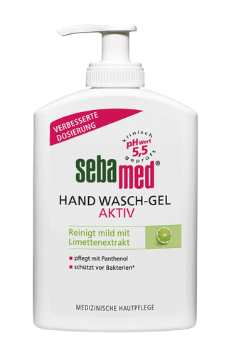 Das seifenfreie sebamed Hand Wasch-Gel aktiv reinigt mild mit Limettenextrakt. Ein Wirkkomplex mit Panthenol und Allantoin spendet Feuchtigkeit und pflegt die Haut. Die besonders milde Formel enthält einen natürlich vorkommenden antibakteriellen Wirkstoff, reinigt die Hände schonend und schützt vor Bakterien *. Die Pflegeformel mit dem Kamillenwirkstoff Bisabolol hilft, empfindliche und gereizte Haut zu beruhigen. Der pH-Wert 5,5 unterstützt den natürlichen Hautschutzmantel und macht sie widerstandsfähiger. Dermatologisch-klinisch getestet