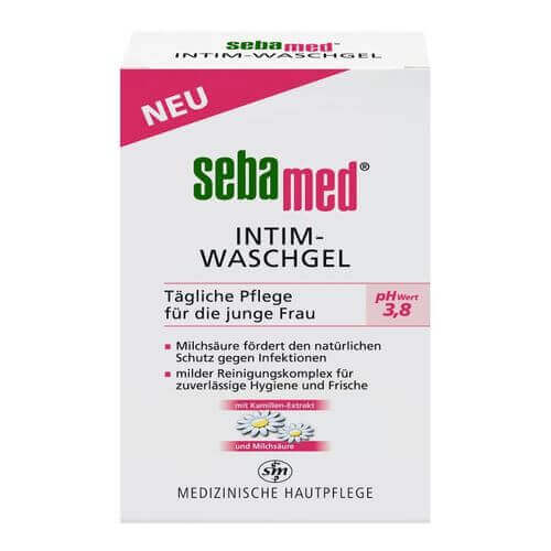sebamed Intim-Waschgel 3,8 wurde auf den physiologischen pH-Wert der Scheide abgestimmt und ist 100% seifen- und alkalifrei. Der pH-Wert 3,8 hilft, den Hautschutzmantel im Genitalbereich zu erhalten, das Gleichgewicht der Mikroflora zu stabilisieren und so vor Infektionserregern zu schützen. Die sanfte Formel mit Bisabolol, dem Wirkstoff der Kamille, wirkt reizlindernd. Ein Pflegekomplex mit Aloe barbadensis beruhigt gereizte Haut und unterstützt die Feuchtigkeitsbalance der empfindlichen Haut. Auch für die Pflege während der Menstruation empfohlen und als therapieunterstützende Intimhygiene geeignet.