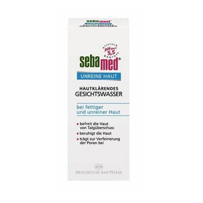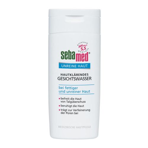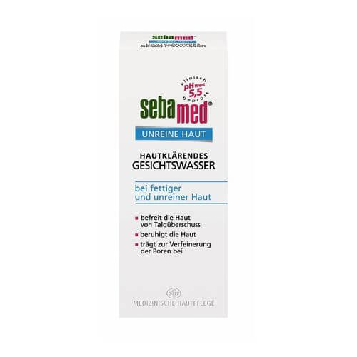 sebamed UNREINE HAUT Hautklärendes Gesichtswasser ist exakt auf die Bedürfnisse der fettigen und der unreinen Haut abgestimmt. Das Resultat: die Haut wird mild und porentief gereinigt, die Haut wird beruhigt, das Hautbild wirkt reiner und ebenmäßiger.