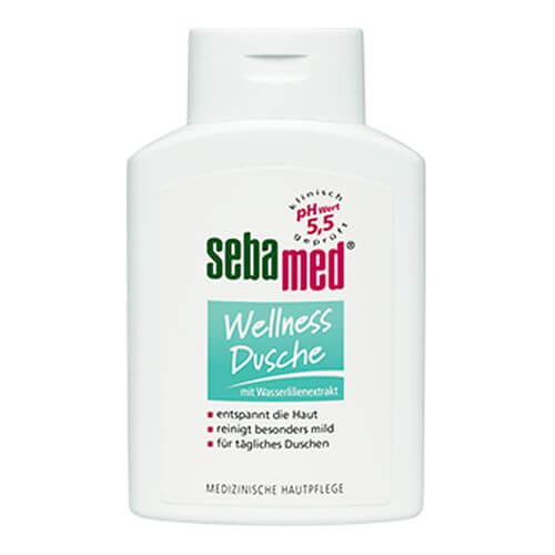 sebamed Wellness Dusche mit ihrem Pflegekomplex aus Wasserlilienextrakt und Allantoin sorgt für ein entspanntes, spürbar glattes und geschmeidiges Hautgefühl. Sie reinigt empfindliche Haut besonders mild und stabilisiert die Feuchtigkeitsbalance der Haut. Die milde Formel trägt zum Schutz vor Austrocknung bei. Der hauteigene pH-Wert 5,5 fördert optimal den Hautschutzmantel als natürliche Barriere gegen Austrocknung und Reizungen.