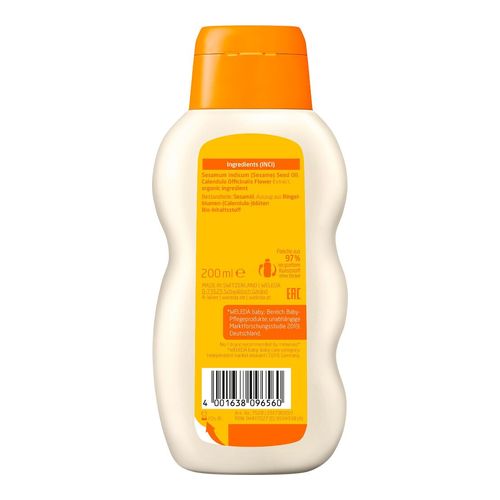 Nach dem Baden oder Waschen eine kleine Menge Öl zwischen den Handflächen verteilen und sanft auf die abgetrocknete Haut des Babys auftragen. Zur Reinigung im Windelbereich etwas Pflegeöl auf einen Wattebausch geben.