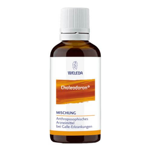 Choleodoron Mischung (Tropfen) ist eine Kombination der Heilpflanzen Gelbwurz (Curcuma) und Schöllkraut und regt die Bildung der Gallenflüssigkeit an. Wenn die Selbstregulation der Gallentätigkeit gestört ist, harmonisiert Choleodoron die sekretorische Funktion.