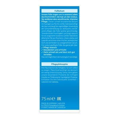 Unsere Füße tragen uns durchschnittlich viermal in unserem Leben um den Globus. Mit dem Weleda Fußbalsam als Begleiter fühlen sich Ihre Füße rundum gepflegt an. Die feine Komposition aus stärkendem Myrrhe- und beruhigendem Calendulaextrakt kräftigt die Haut und beugt somit bei regelmäßiger Anwendung der Hornhaut- und Schrundenbildung vor. Tonerde bindet Feuchtigkeit und sorgt dadurch für ein angenehm trockenes Fuß-Klima. Wollwachs und Olivenöl pflegen selbst beanspruchte Haut geschmeidig weich. Echte ätherische Öle verströmen einen erfrischenden Duft, desodorieren und haben einen angenehm kühlenden Effekt auf der Haut.