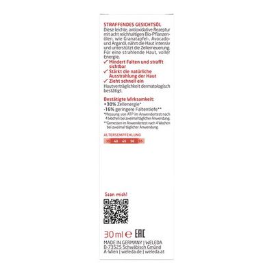 Schnell einziehende Formel mit reichhaltigen Bio-Pflanzenölen. Sorgt für mehr Elastizität und wirkt antioxidativ sowie zellerneuernd. Mindert Linien und Falten. Festigt und glättet die Haut sichtbar. Anti-Pollution-Formel. Hautverträglichkeit dermatologisch bestätigt