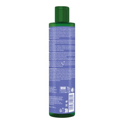 Wasser, Natriumcocosulfat, Zuckertensid, Betain, Zitronensäure, Extrakt aus Alpen-Lein+, Hyaluronsäure, Aminosäuretensid, Glyzerin, Vitamin E, Fettsäureglyzerid, Hydrierte Fettsäureglyzeride, Lezithin, Vitamin C Palmitat, Kochsalz, Natriumbenzoat, Natriumhydroxid, Kaliumsorbat, Natriumsulfat, Duft aus natürlichen ätherischen Ölen und/oder Pflanzenextrakten, Orangenschalenöl, Limonen, Linalool +aus biologischem Anbau