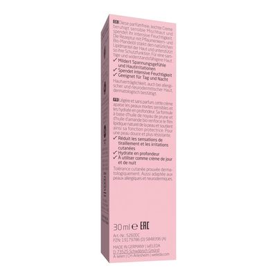 Diese parfümfreie, leichte Creme mit nur neun Inhaltsstoffen ist dein perfektes Match, wenn du sensible Mischhaut hast und eine Creme suchst, die Spannungsgefühle und Hautirritationen mildert. Spüre, wie die Creme deine Haut beruhigt und ihr intensive Feuchtigkeit spendet. Die bewährte, reine Formel mit Pflaumenkern- und Bio-Mandelöl stärkt den natürlichen Lipidmantel der Haut und unterstützt so ihre Schutzfunktion. Deine Haut wird samtig und widerstandsfähig – und das nur mit ganz wenigen Inhaltsstoffen. Bei empfindlicher Haut ist weniger einfach mehr! Du kannst die Creme morgens und abends anwenden.