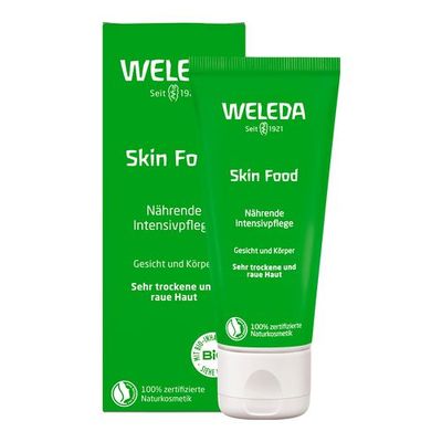 Weleda Skin Food ist eine natürliche Basispflege für die ganze Familie – besonders bei trockener, rauer und spröder Haut. Die wirksame Komposition mit Auszügen aus Stiefmütterchen, Kamillen- und Calendulablüten hat traditionell eine hautberuhigende Wirkung. Schon seit 90 Jahren vertrauen unsere Kunden diesem Klassiker von Weleda – für glatte und zarte Haut.