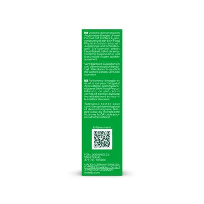 Die mikrobiomfreundliche Formel kombiniert die Skin Food Phyto-Infusion aus 100 % natürlichen Pflanzenextrakten von Rosmarin, Calendula, Kamille und Stiefmütterchen mit Koffein und Hyaluronsäure. So werden Augenringe gemindert, Schwellungen reduziert und die Haut sofort frischer, wacher und lebendiger.
