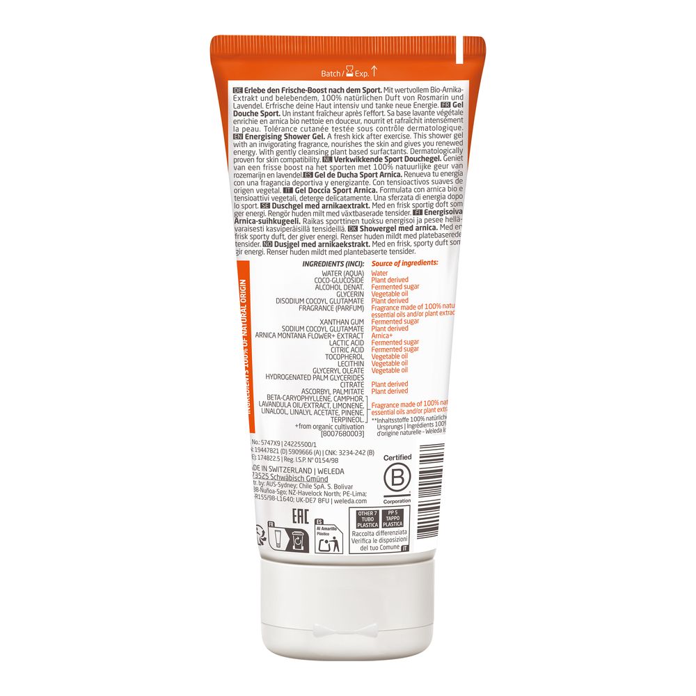 Das belebende Sport Frische-Boost Duschgel Arnika pflegt die Haut, entspannt und schenkt neue Energie. Dank milder Tenside auf Basis pflanzlicher Rohstoffe bewahrt das Duschgel mit einem Auszug aus Bio-Arnikablüten die natürliche Feuchtigkeit der Haut und reinigt sanft.
