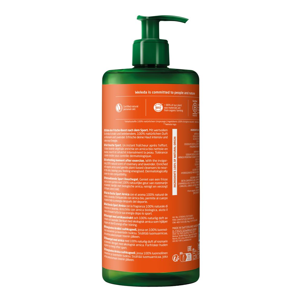 Starten Sie erfrischt, belebt und voller Energie in den Tag – oder gönnen Sie sich nach dem Sport eine revitalisierende Dusche für Körper und Sinne. Das Sport Frische-Boost Duschgel Arnika ist mehr als nur eine Reinigung – es bietet Ihnen ein pflegendes Duscherlebnis, das neue Kraft schenkt, die Haut verwöhnt und Verspannungen sanft löst. Die belebende Rezeptur mit einem wertvollen Auszug aus Bio-Arnikablüten wurde speziell entwickelt, um die Haut nach körperlicher Anstrengung oder einem aktiven Tag zu beruhigen und ihr gleichzeitig ein angenehmes Frischegefühl zu verleihen.