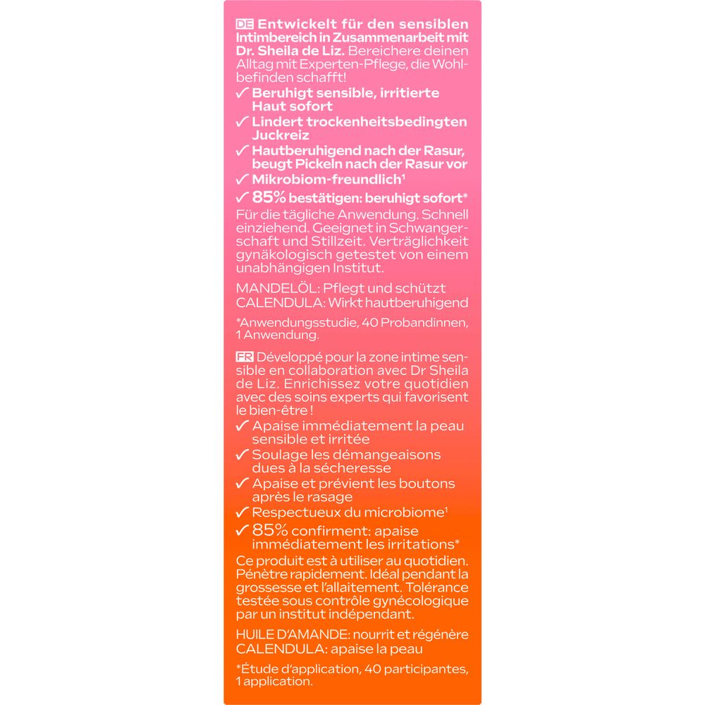 Die Formulierung ist mikrobiofreundlich, gynäkologisch getestet und auch für die Anwendung während Schwangerschaft und Stillzeit geeignet. Der zarte, leicht süßlich-tropische Duft sorgt für ein angenehmes Pflegeerlebnis und ein sofortiges Wohlbefinden im Intimbereich.